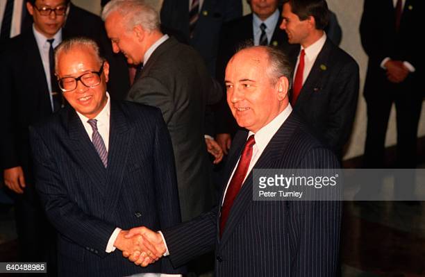 80年代處於後毛時代的中國人對戈爾巴喬夫的“新思維”興趣很濃,而他在中國一場大悲劇前夜出現在北京,1989年5月15日,民主運動蓬勃,天安門廣場學生絕食請願,當局慌亂中都沒有來得及為這位前來與兩黨絕交差不多30年之後登陸的破冰人鋪上紅地毯歡迎,他與中共改革派領袖、總書記趙紫陽面談,這一場面通過電視直播傳遍全國,趙紫陽談話中透露中共的實際掌門人是幕後的鄧小平,蘇共總書記看到了中共詭異陰險難測的一面。